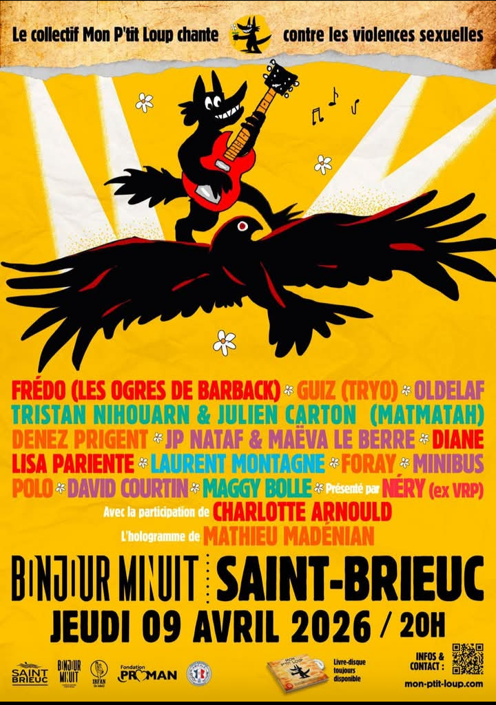 Mon P’tit Loup Saint Brieuc (22) Date:09 - Avr - 2026 Time:20:oo Location:Saint Brieuc (22) Venue:Bonjour Minuit https://www.facebook.com/share/16by2YKfQe/